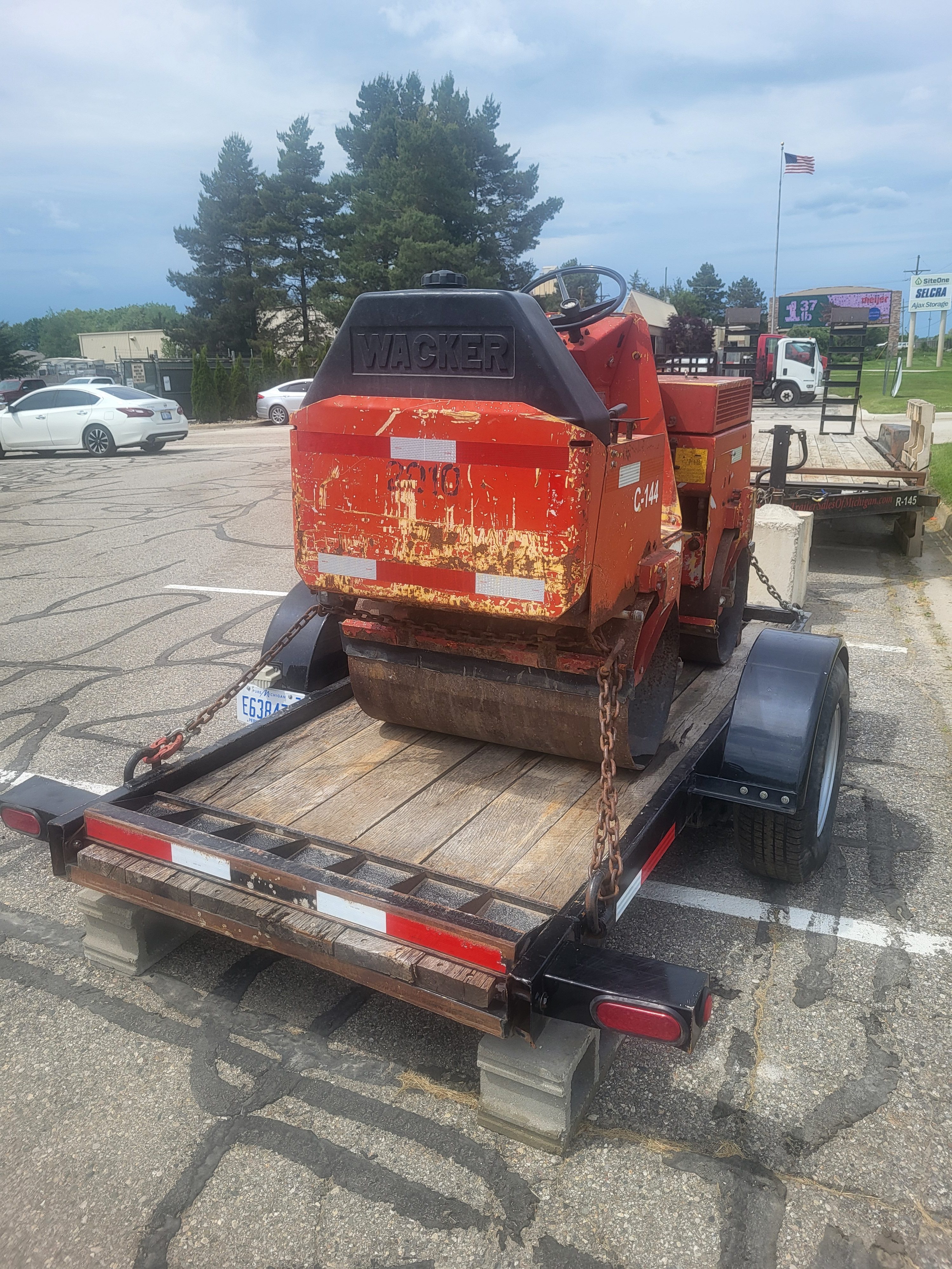 For sale is a Wacker RD880V vibratory asphalt roller and single axle tilt-deck trailer. Both are in good shape and ready to work, only selling because we bought a larger unit. See details for each unit below: